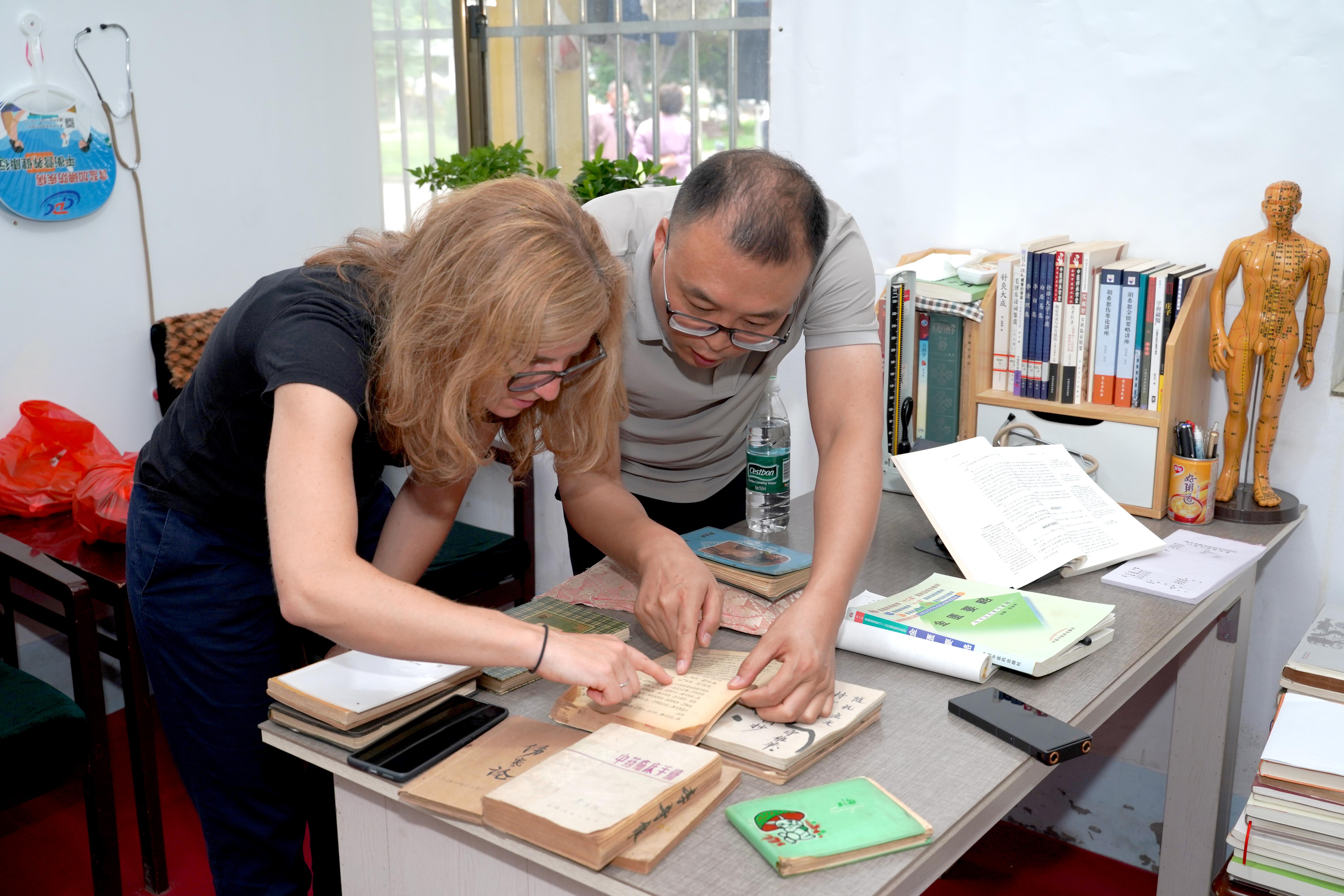 在山东临沂采访四代行医的张德庆医生时,他向调研团讲述了在设备匮乏时期与父亲自制医疗器械的经历,展现了基层医生的创新智慧。Emily Mae Graf教授对中国赤脚医生自制自用的医疗器械产生巨大兴趣,通过详细的介绍,这些鲜活事例让她深刻感受到中国基层医生在传统与现代交融环境中的坚守与创新。